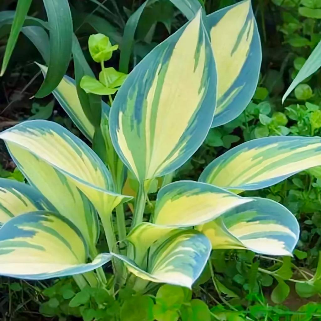 Хоста Ремембер Ми – многолетнее травянистое растение, отличие этой хосты заключается именно в листьях. Её удлиненные листья на черешках образуют роскошную прикорневую розетку – куст высотой до 40 см. Сердцевина каждого листа окрашена в золотисто-кремовый цвет, а неравномерная окантовка имеет синевато- зеленый оттенок.