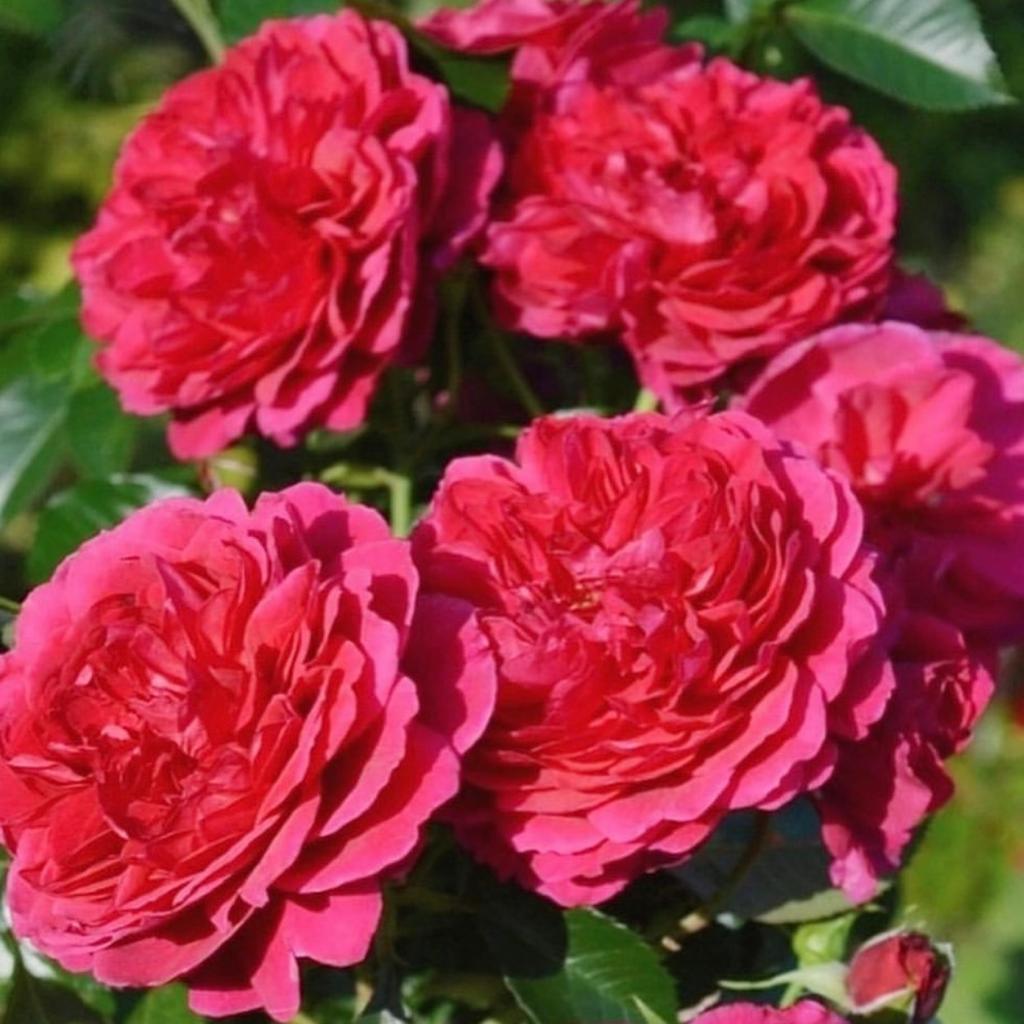 Цветы находятся в соцветиях, которые могут прогибаться под своим весом. Повторное цветение продолжается с июня до осенних заморозков. После того как первые бутоны отцветают, наступает небольшой перерыв, а затем образуются новые. При должном уходе количество цветов на кусте довольно большое, а их размер достигает 10 см в диаметре. У растения в первый год после посадки удаляют бутоны. Так цветение на следующий год будет более обильным, а куст лучше переживет морозы.
